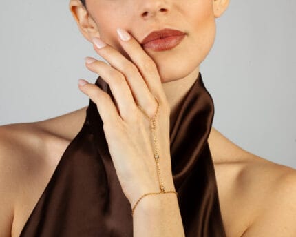 Κομψό κολιέ-γραβάτα με δύο τετράγωνα στρας σε κάθετο σχεδιασμό, που προσφέρει διακριτική λάμψη και μοντέρνα, επιμηκυμένη γραμμή για κάθε εμφάνιση.