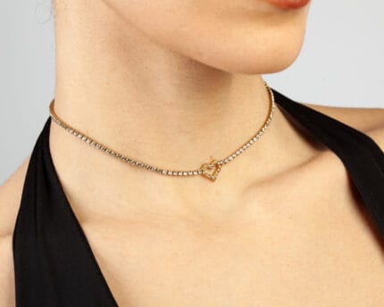 Βραχιόλι με καρδιά διακοσμημένη με στρας, ενσωματωμένη απευθείας στην αλυσίδα, που χαρίζει φωτεινή και κομψή εμφάνιση στον καρπό. Ο ρομαντικός και θηλυκός χαρακτήρας της καρδιάς συνδυάζεται με τη διακριτική λάμψη των στρας, δημιουργώντας ένα κόσμημα που ολοκληρώνει αρμονικά κάθε outfit. Ιδανικό για καθημερινή χρήση αλλά και για πιο ιδιαίτερες περιστάσεις, προσφέρει ένα statement touch με μοντέρνα αισθητική και διαχρονική κομψότητα.
