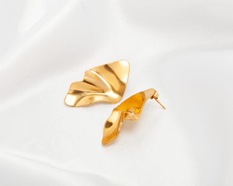 Τα σκουλαρίκια NYMPHIA ξεχωρίζουν για τον ιδιαίτερο κυματιστό σχεδιασμό τους που δημιουργεί ένα δυναμικό και σύγχρονο αποτέλεσμα. Οι απαλές καμπύλες και η γυαλιστερή επιφάνειά τους αντανακλούν το φως, χαρίζοντας εντυπωσιακή λάμψη σε κάθε εμφάνιση.
