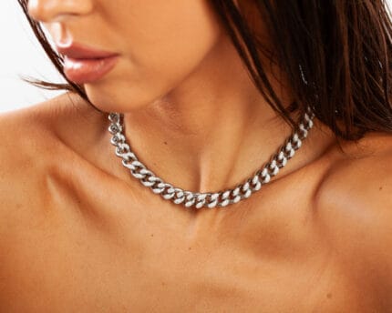 Αναβαθμίστε το στυλ σας με αυτό το εντυπωσιακό βραχιόλι chunky αλυσίδα σε λαμπερό ασημί τόνο. Ο bold σχεδιασμός του με παχιούς κρίκους προσδίδει δυναμισμό και κομψότητα, καθιστώντας το ένα statement κόσμημα που ξεχωρίζει. Φοριέται καθημερινά για να δώσει edgy χαρακτήρα στο look σας, αλλά και σε πιο βραδινές εμφανίσεις για μια glam πινελιά. Μπορεί να συνδυαστεί με άλλα λεπτά βραχιόλια για layering ή να φορεθεί μόνο του για minimal αλλά επιβλητικό αποτέλεσμα.