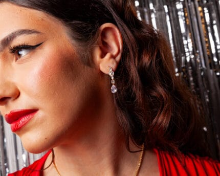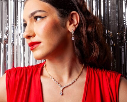 Διακριτικό χρυσό κολιέ με τριπλή λαμπερή πέτρα σε κατακόρυφη διάταξη, που προσθέτει κομψότητα και λάμψη σε κάθε εμφάνιση.